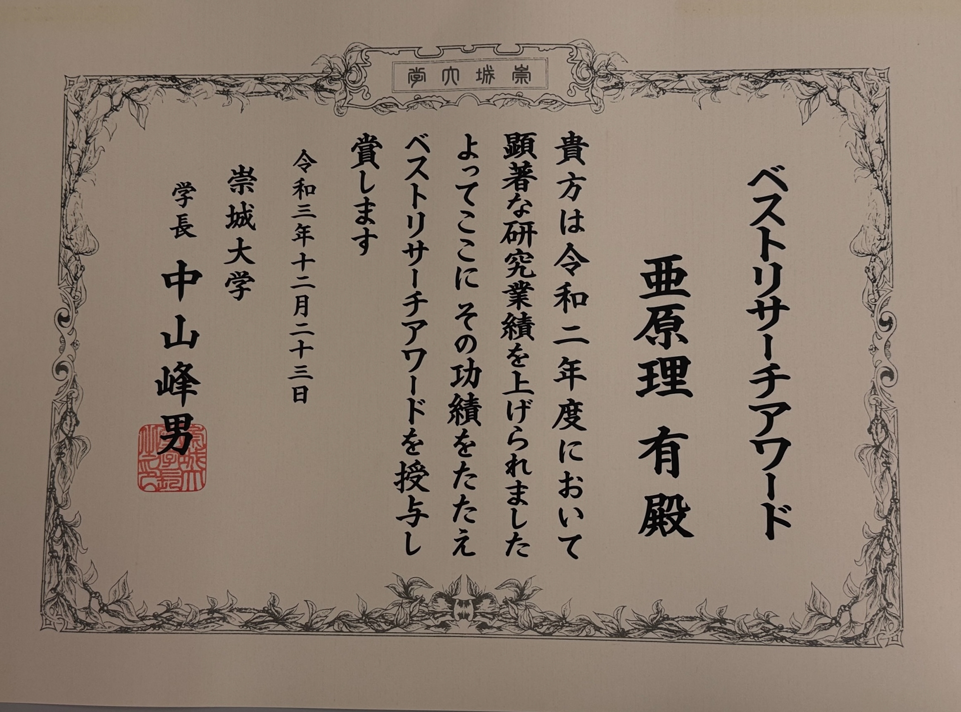 奨学寄付金:2020年度